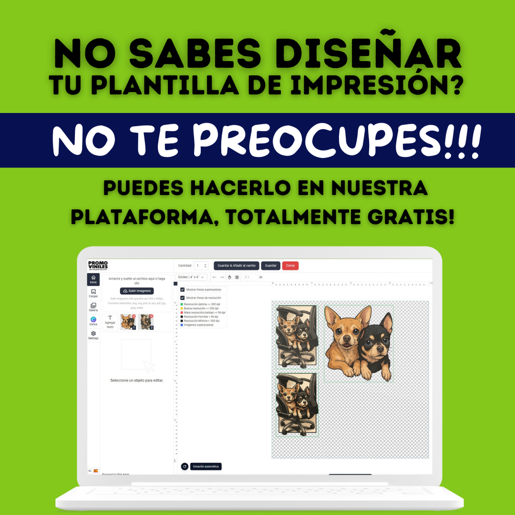 - Sin sombras, transparencias o degrádes. Envia tu arte con borde sólidos.